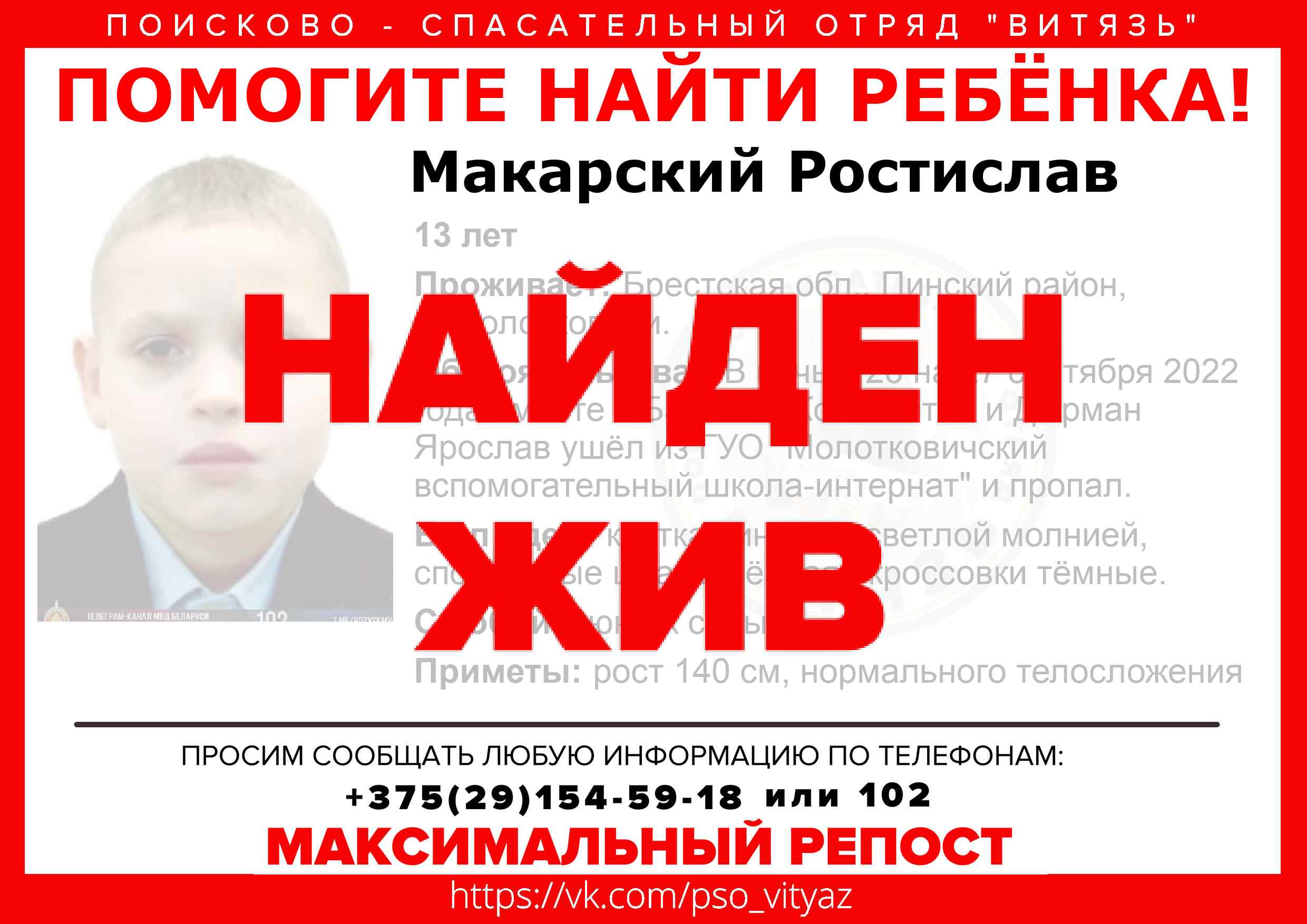 Всех, кто владеет информацией, просим сообщить: ПСО "ВИТЯЗЬ" +375(29)154-59-18 |
