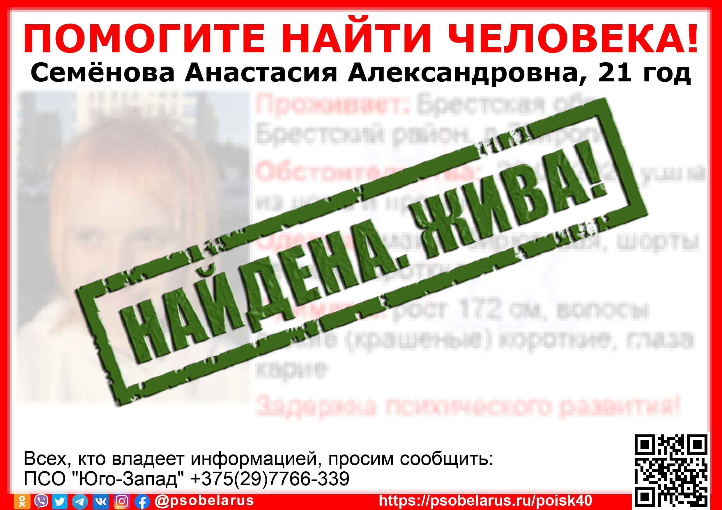 Скачать ориентировкуДля оперативного получения информации о пропавших людях и сборах на поиски можно подписаться на бота оповещения: Телеграм