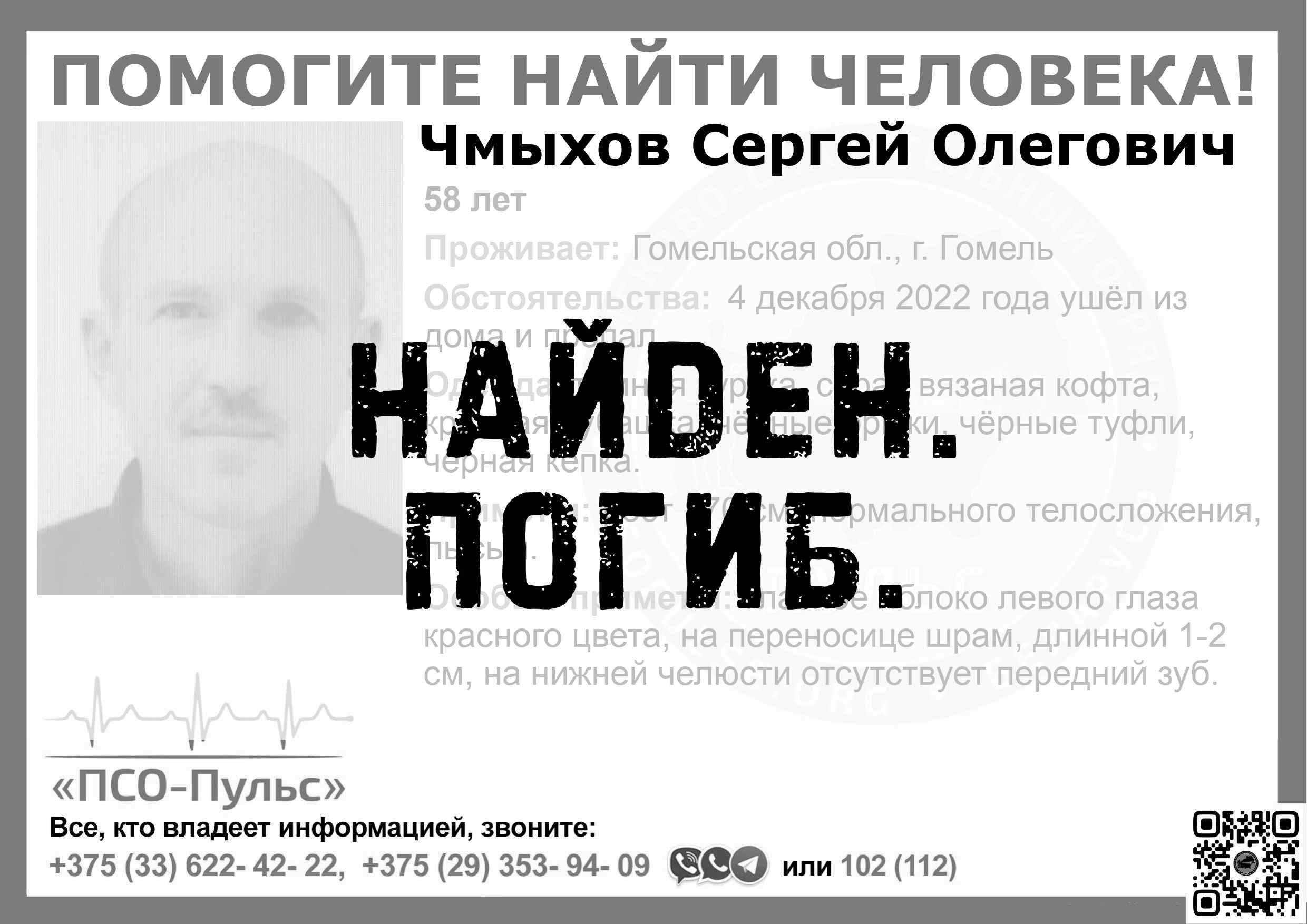 Всех, кто владеет информацией, просим сообщить: ПСО "ПСО-Пульс" +375(33)622-4222 |