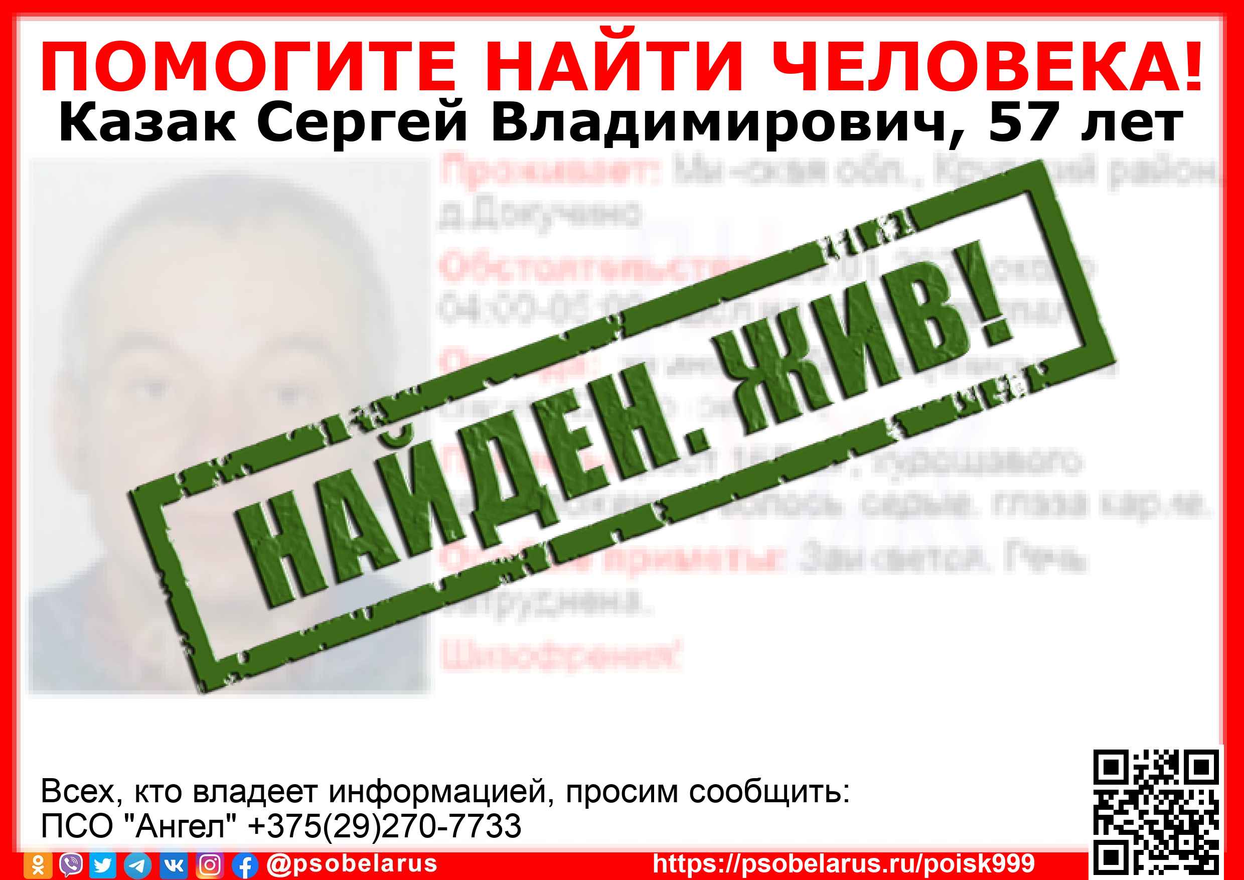 Всех, кто владеет информацией, просим сообщить: ПСО "Ангел" +375(29)270-7733  |