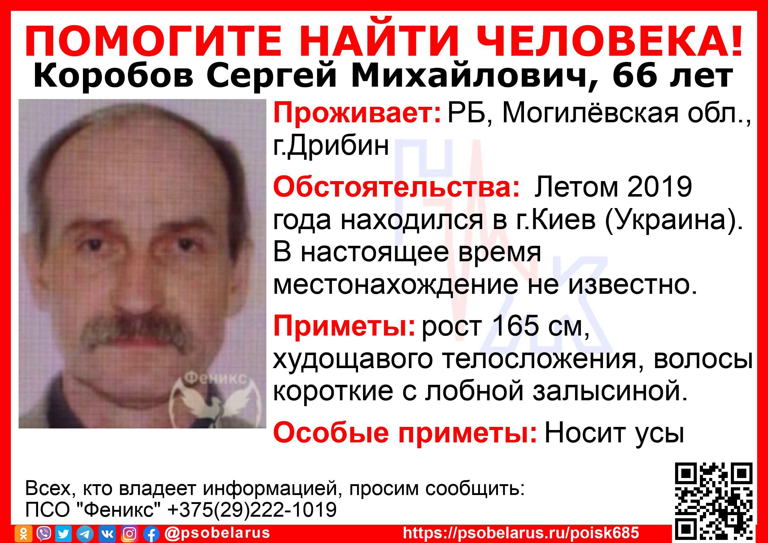 Всех, кто владеет информацией, просим сообщить: ПСО "Феникс" +375(29)222-1019 |
