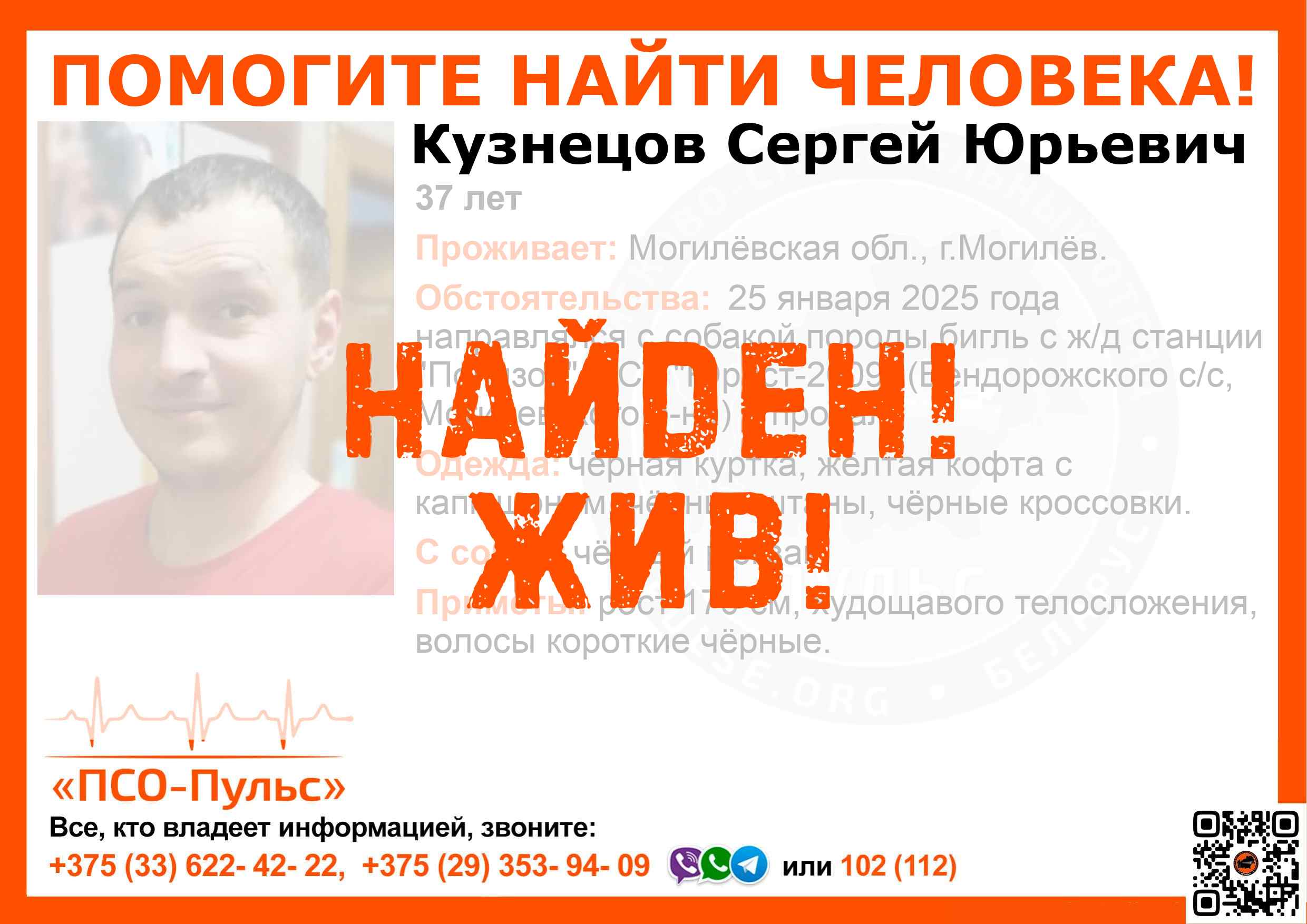 Всех, кто владеет информацией, просим сообщить: ПСО "ПСО-Пульс" +375(33)622-4222 |