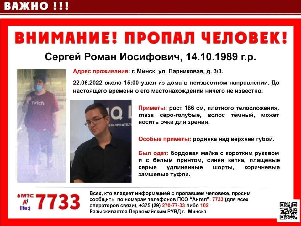 Всех, кто владеет информацией, просим сообщить: ПСО "Ангел" +375(29)270-7733 |