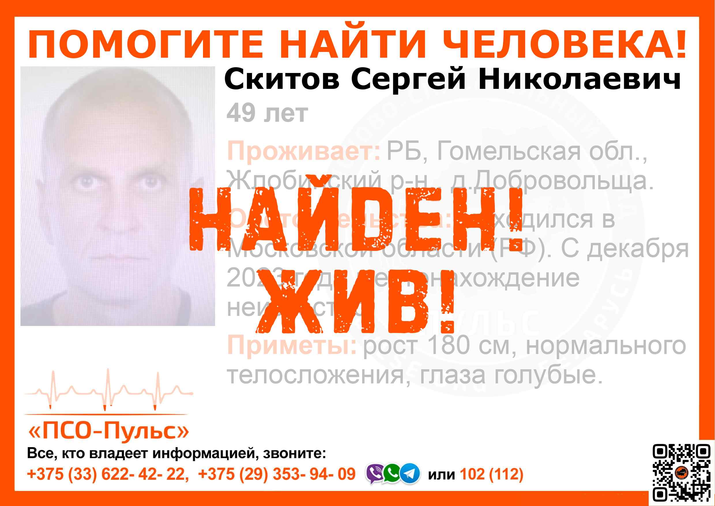 Всех, кто владеет информацией, просим сообщить: ПСО "ПСО-Пульс" +375(33)622-4222 |