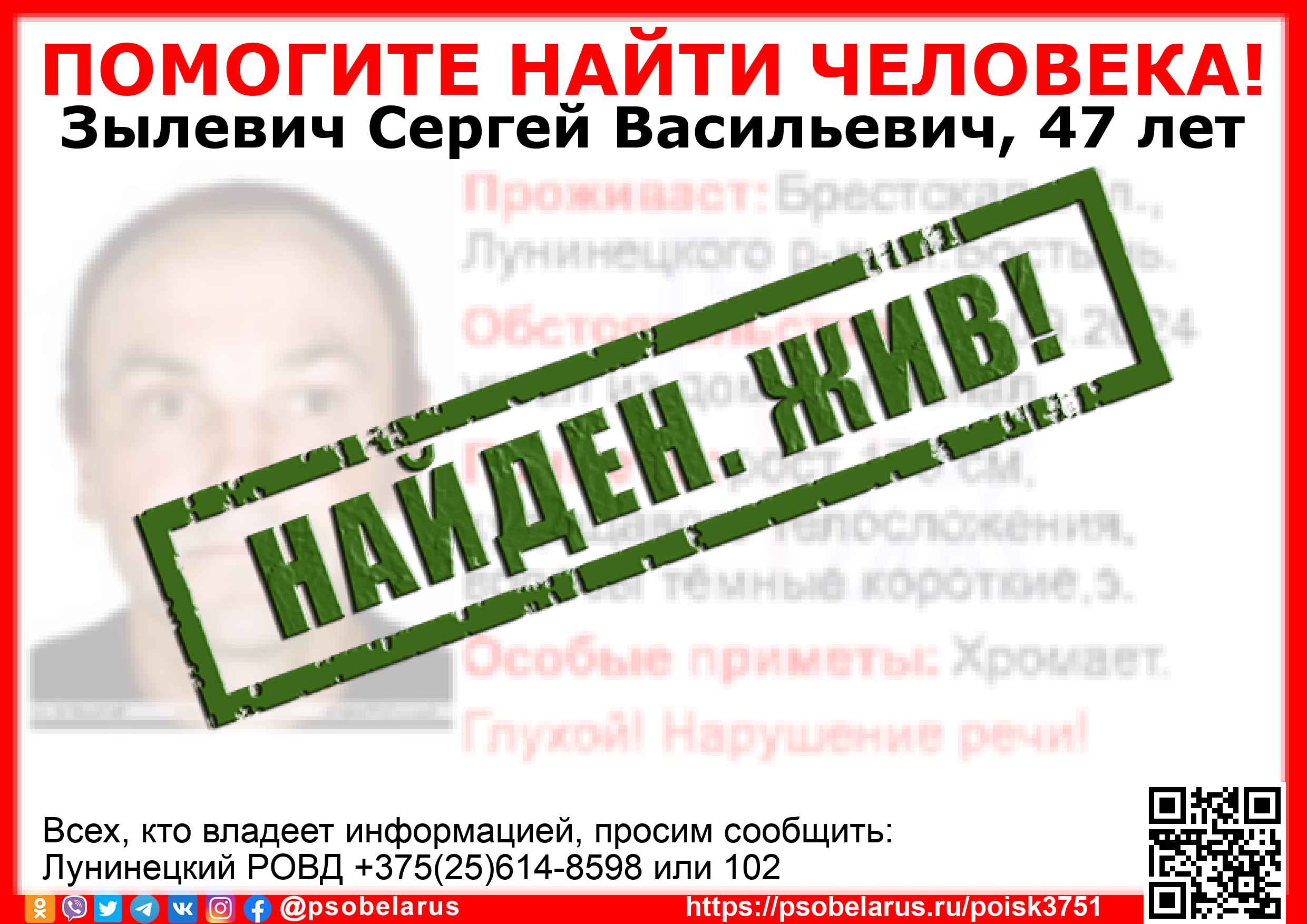 Всех, кто владеет информацией, просим сообщить: Лунинецкий РОВД +375(25)614-8598 или 102 |