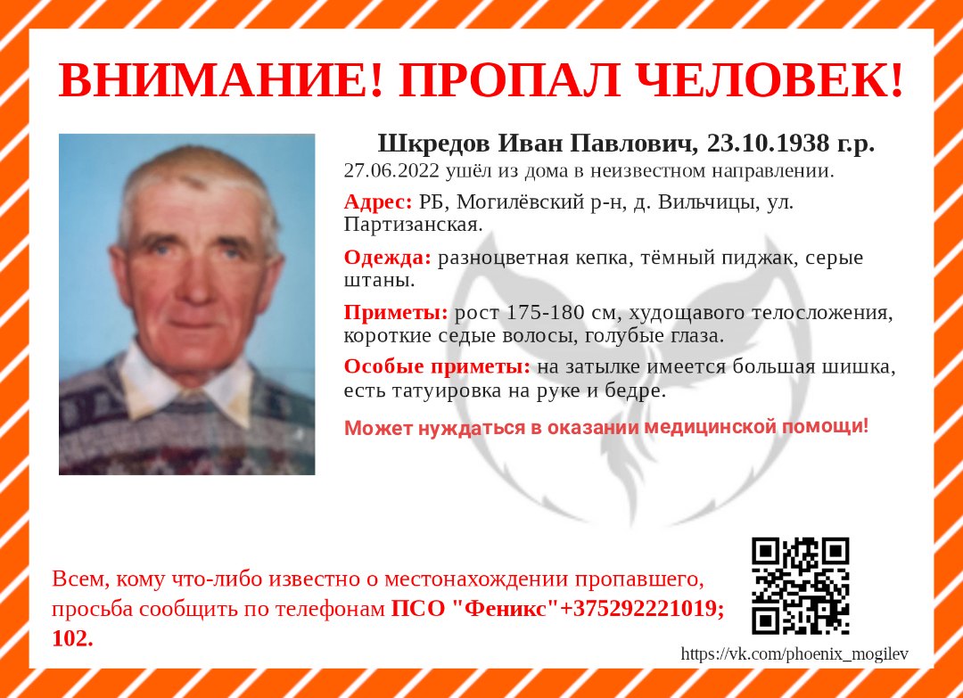 Всех, кто владеет информацией, просим сообщить: ПСО "Феникс" +375(29)222-1019 |