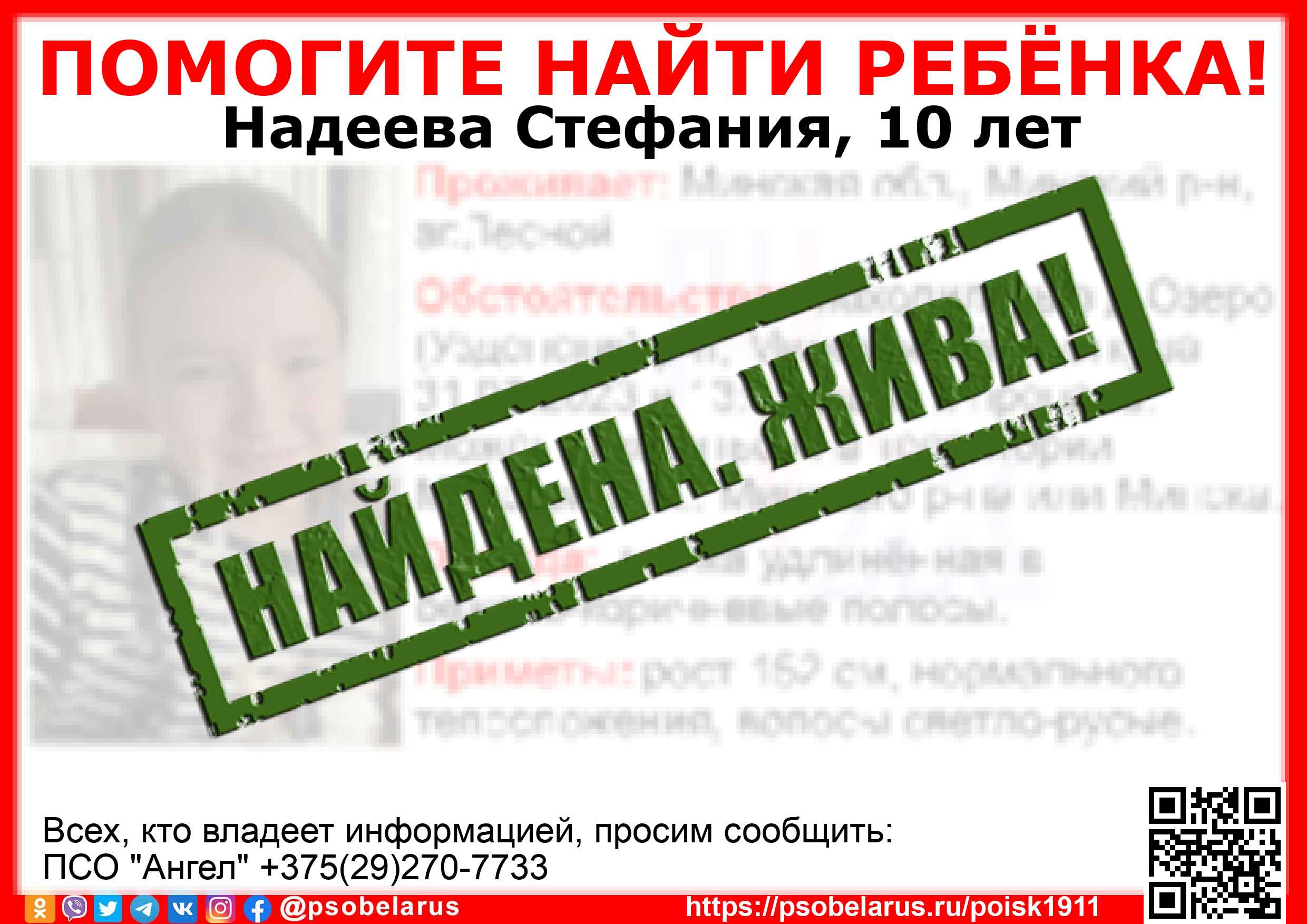 Всех, кто владеет информацией, просим сообщить: ПСО "Ангел" +375(29)270-7733 |