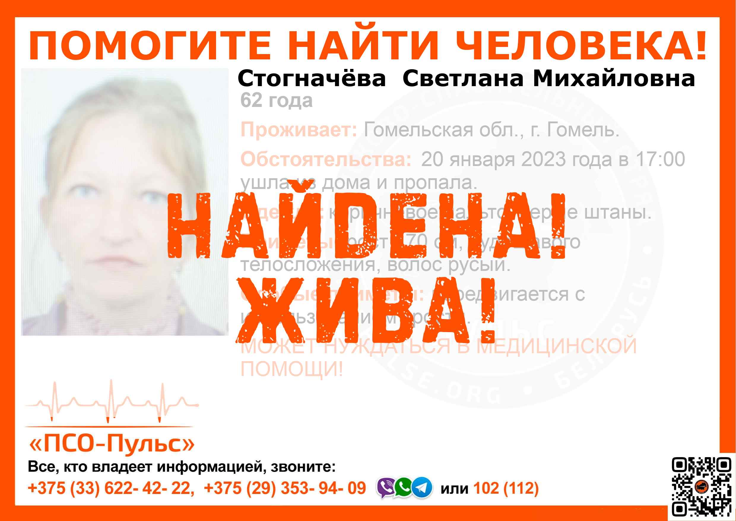 Скачать ориентировкуДля оперативного получения информации о пропавших людях и сборах на поиски можно подписаться на бота оповещения: Телеграм