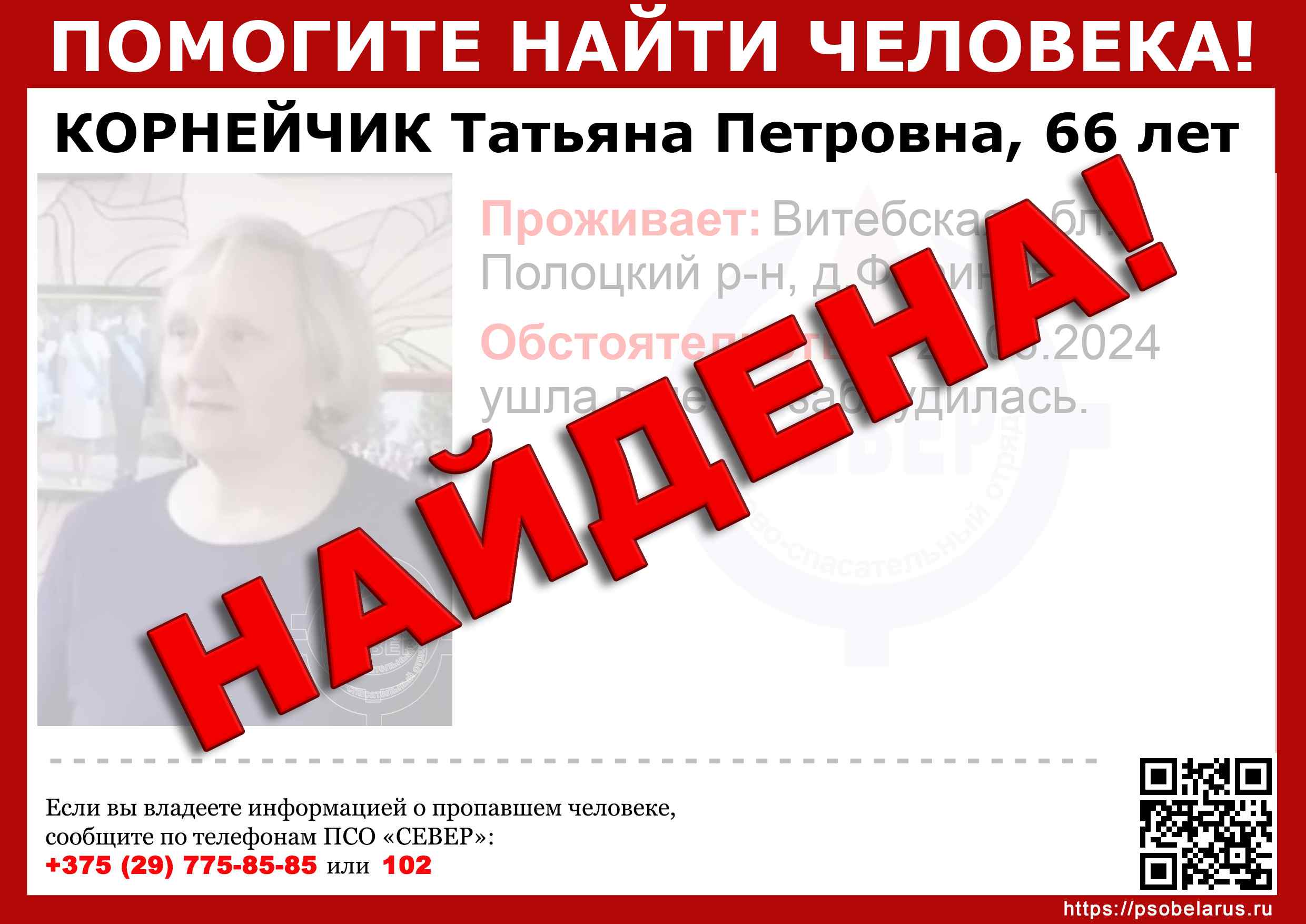 Всех, кто владеет информацией, просим сообщить: ПСО "СЕВЕР" +375(29)775-8585 |