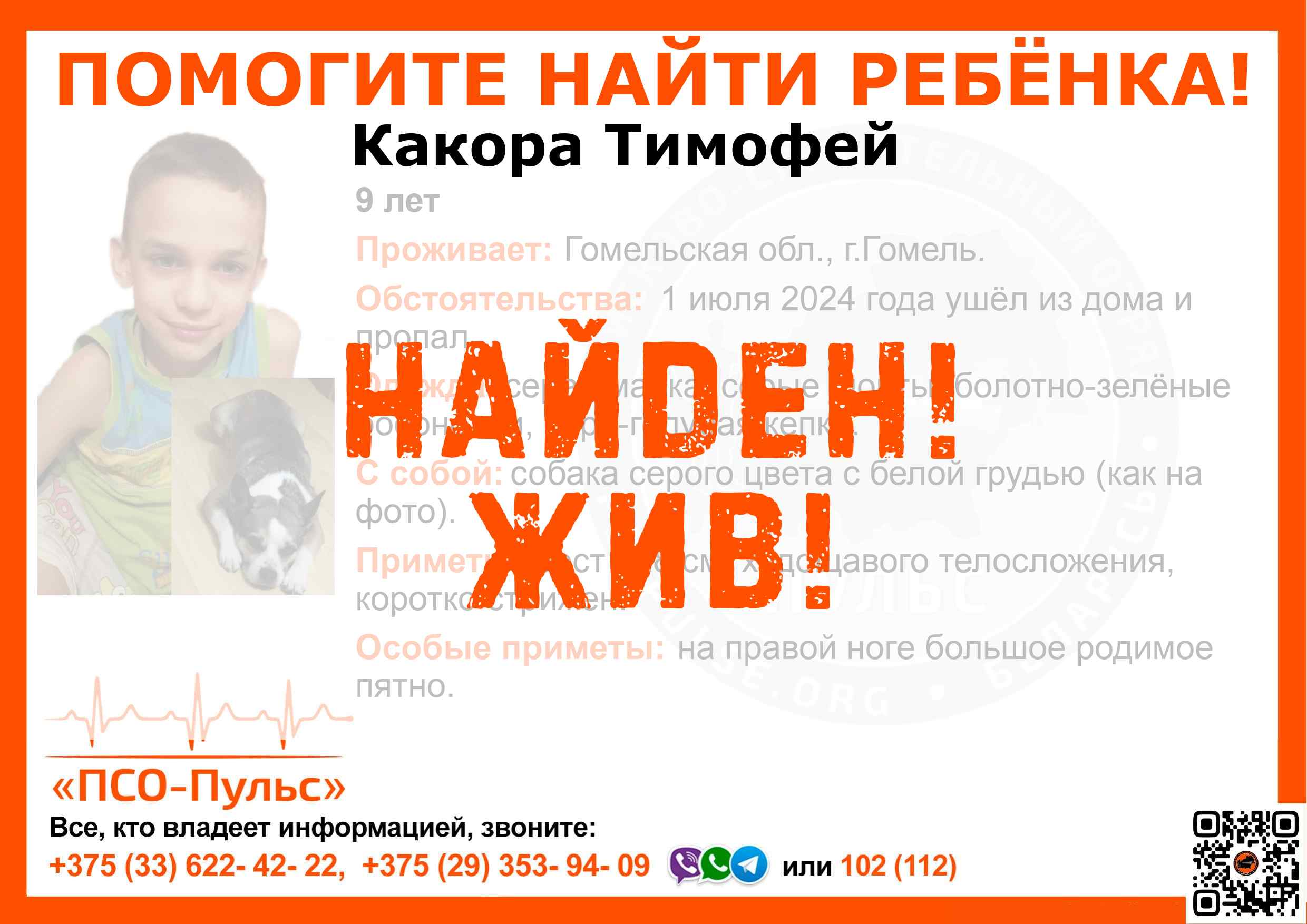 Всех, кто владеет информацией, просим сообщить: ПСО "ПСО-Пульс" +375(33)622-4222 |
