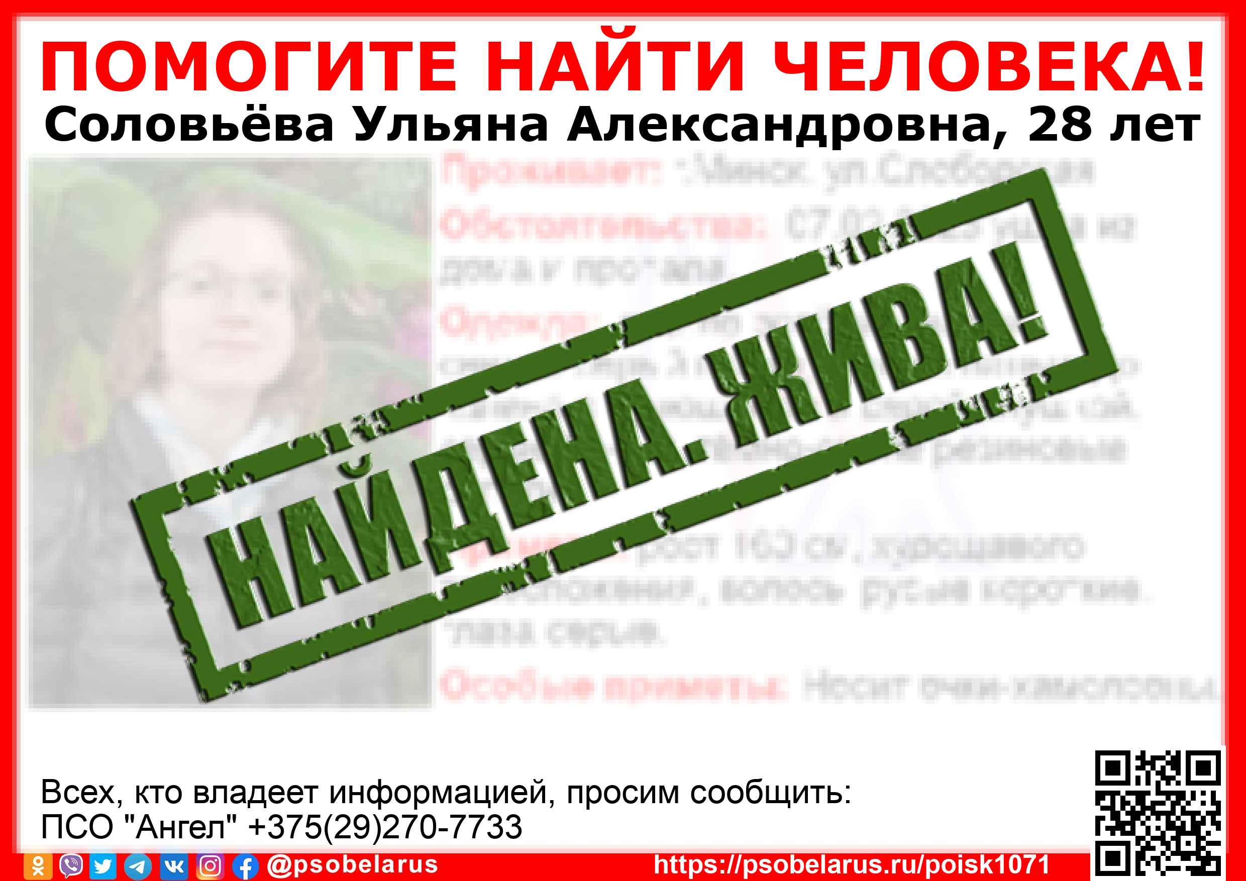 Скачать ориентировкуДля оперативного получения информации о пропавших людях и сборах на поиски можно подписаться на бота оповещения: Телеграм