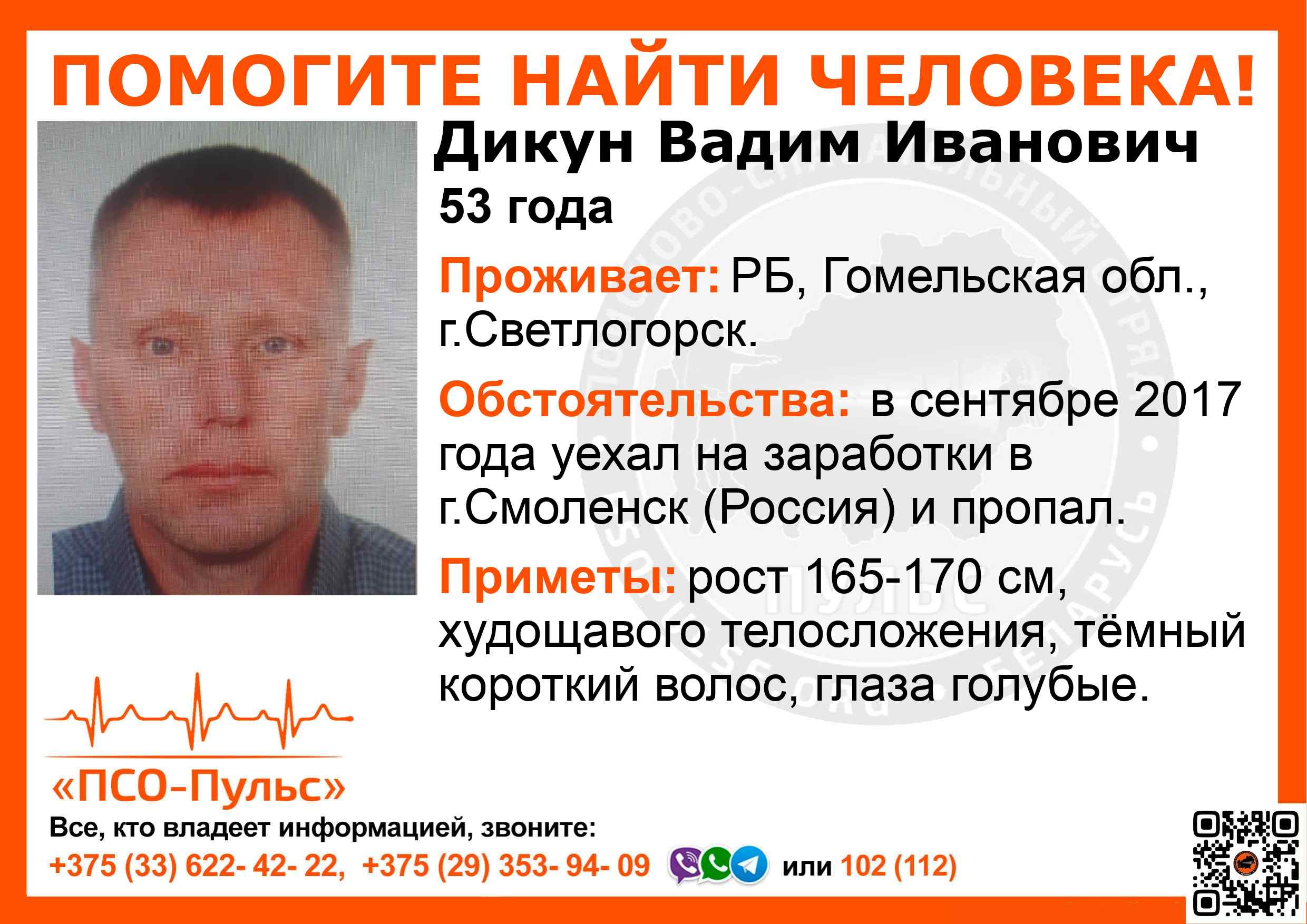Всех, кто владеет информацией, просим сообщить: ПСО "ПСО-Пульс" +375(33)622-4222 |