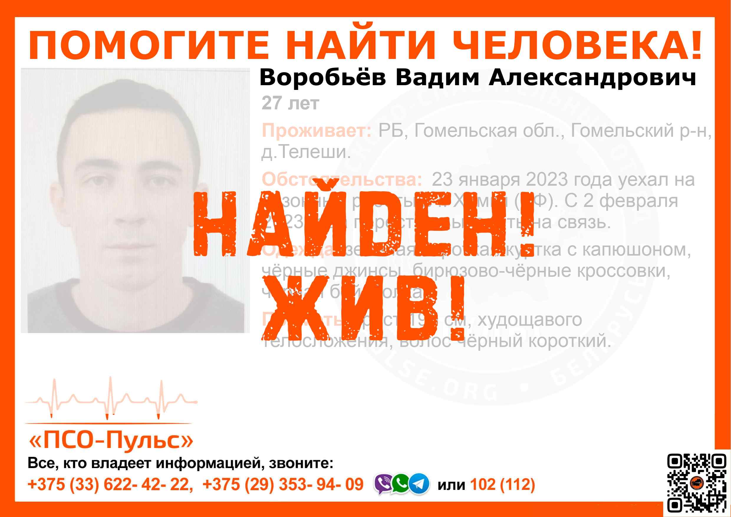 Всех, кто владеет информацией, просим сообщить: ПСО "ПСО-Пульс" +375(33)622-4222 |