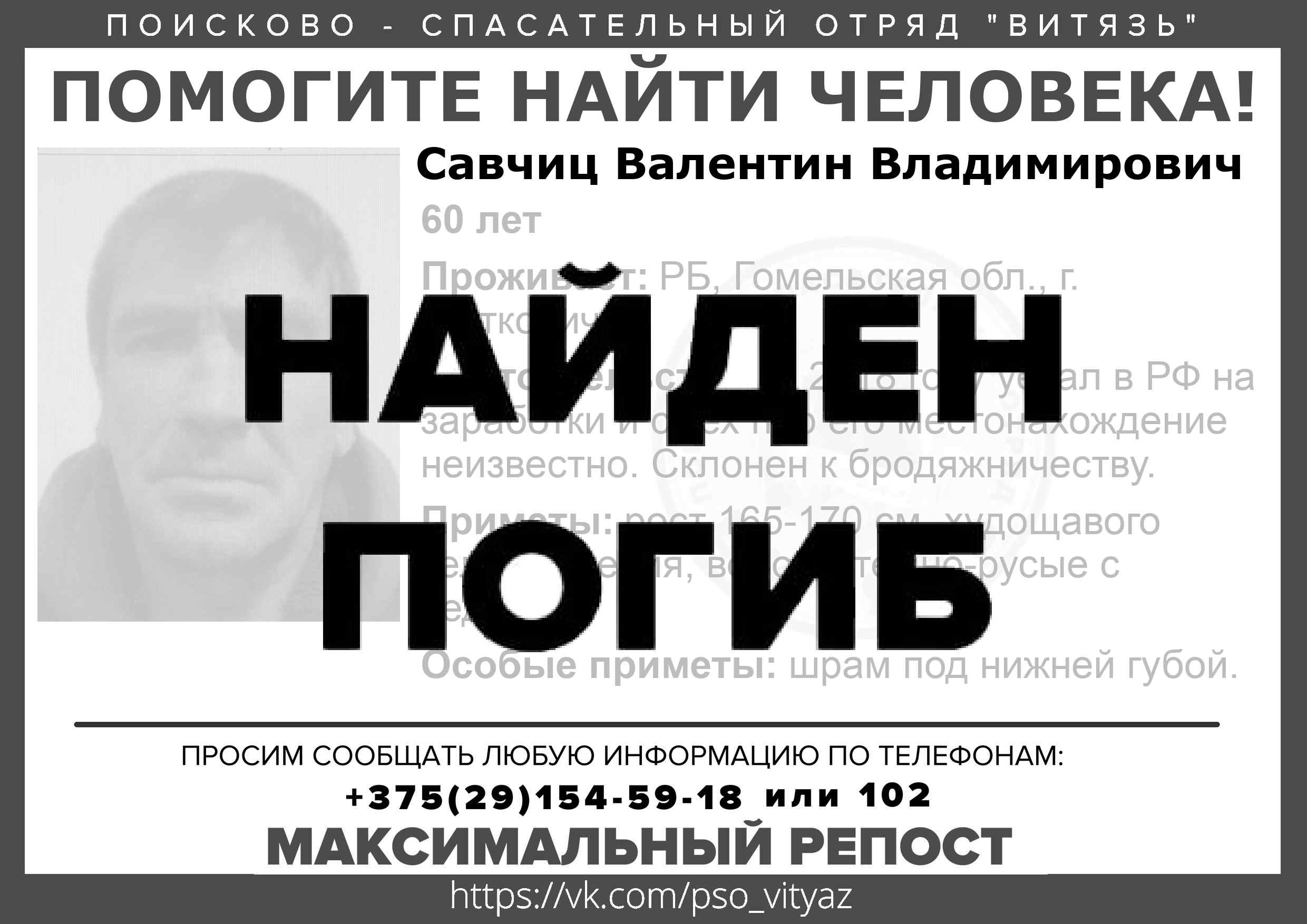 Всех, кто владеет информацией, просим сообщить: ПСО "ВИТЯЗЬ" +375(29)154-59-18 |
