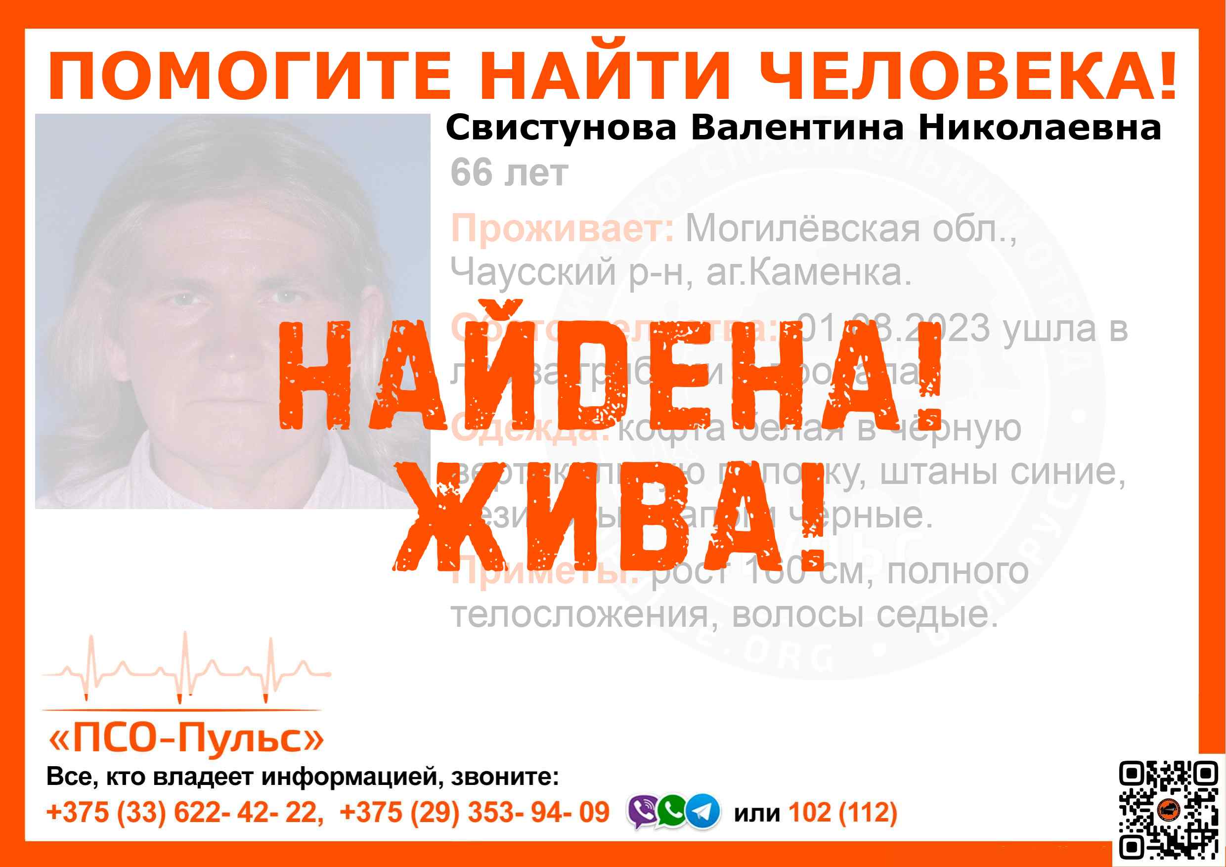 Всех, кто владеет информацией, просим сообщить: ПСО "ПСО-Пульс" +375(33)622-4222 |