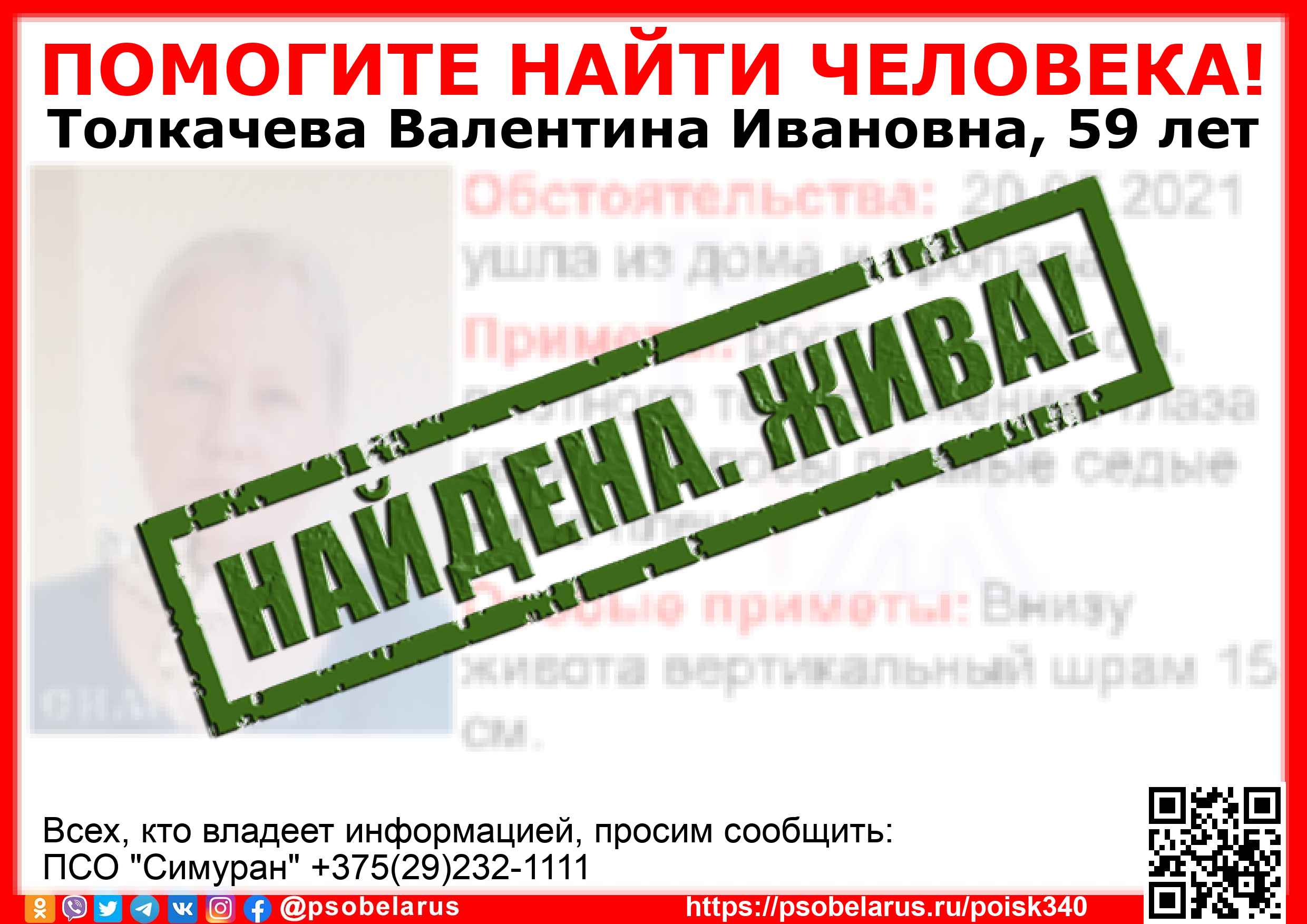 | Всех, кто владеет информацией, просим сообщить: ПСО "Симуран" +375(29)232-1111 |  |