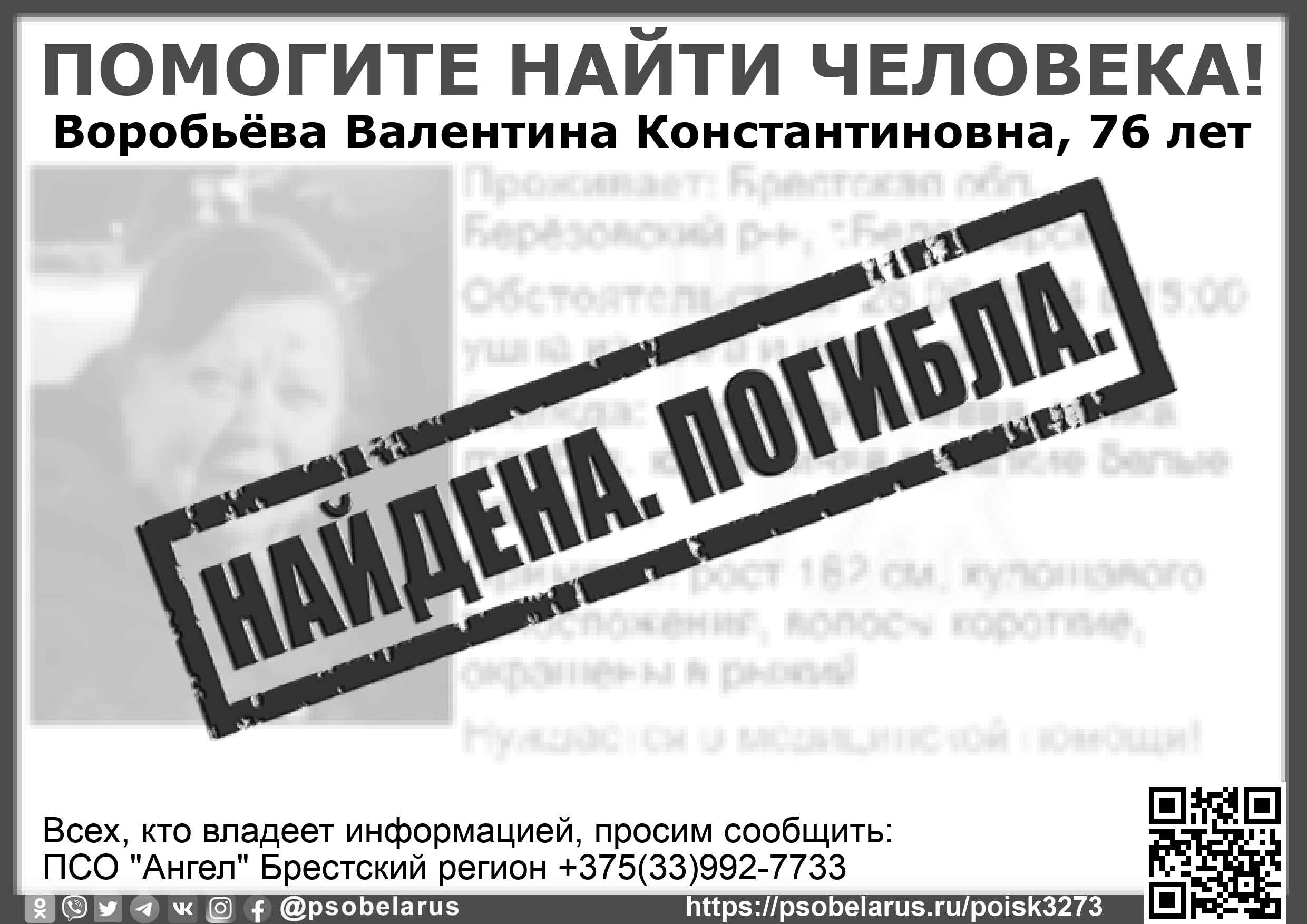 Всех, кто владеет информацией, просим сообщить: ПСО "Ангел" Брестский регион +375(33)992-7733 |