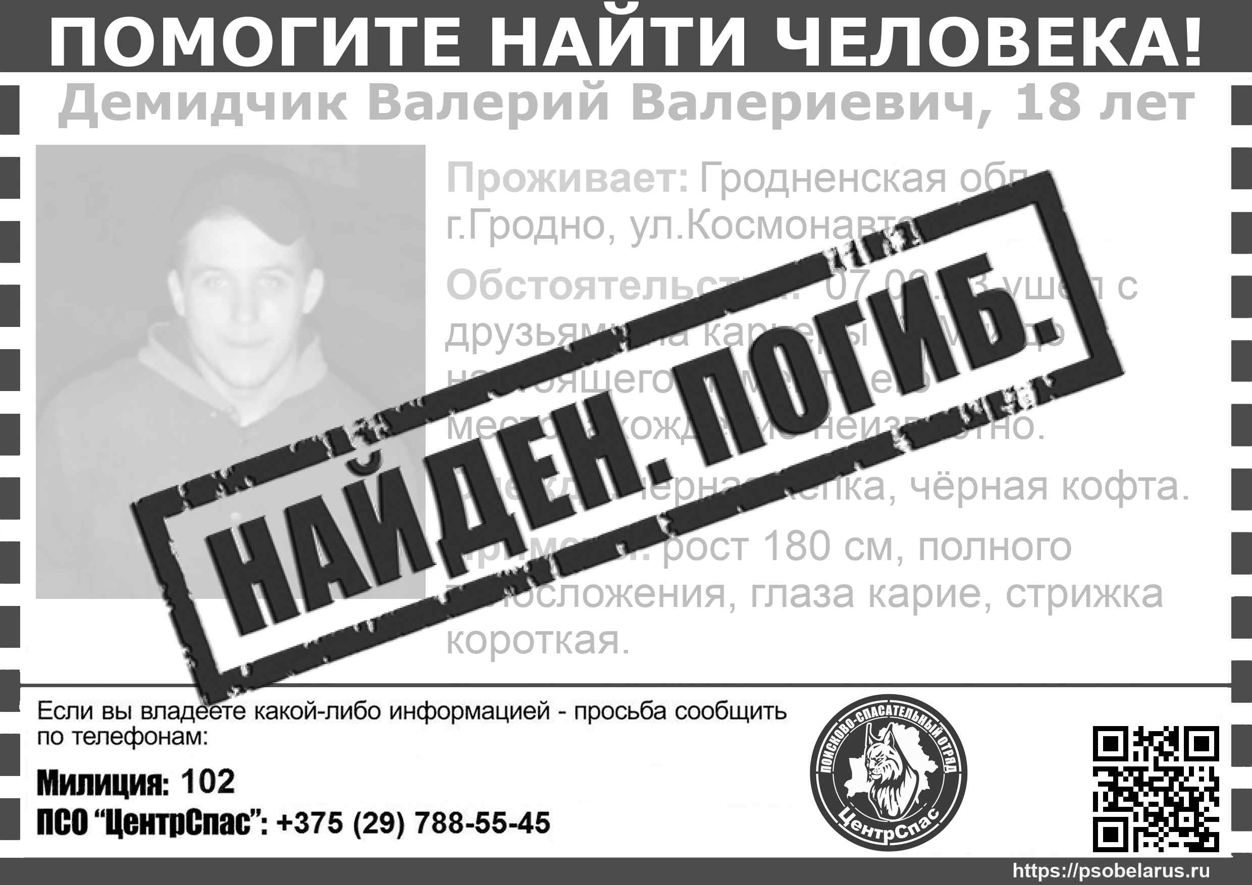 Всех, кто владеет информацией, просим сообщить: ПСО "ЦентрСпас" +375(29)788-5545 |