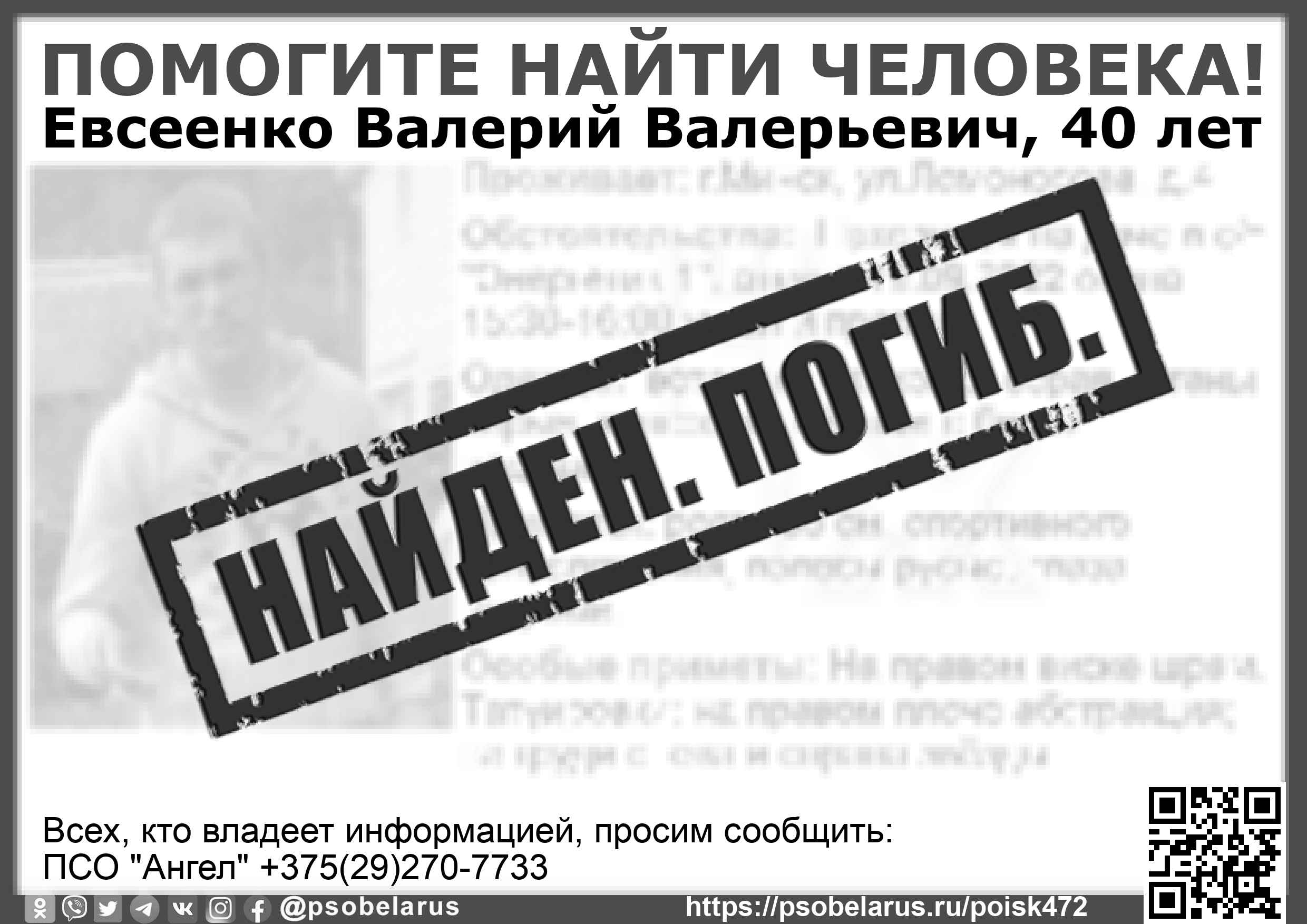 Всех, кто владеет информацией, просим сообщить: ПСО "Ангел" +375(29)270-7733 |
