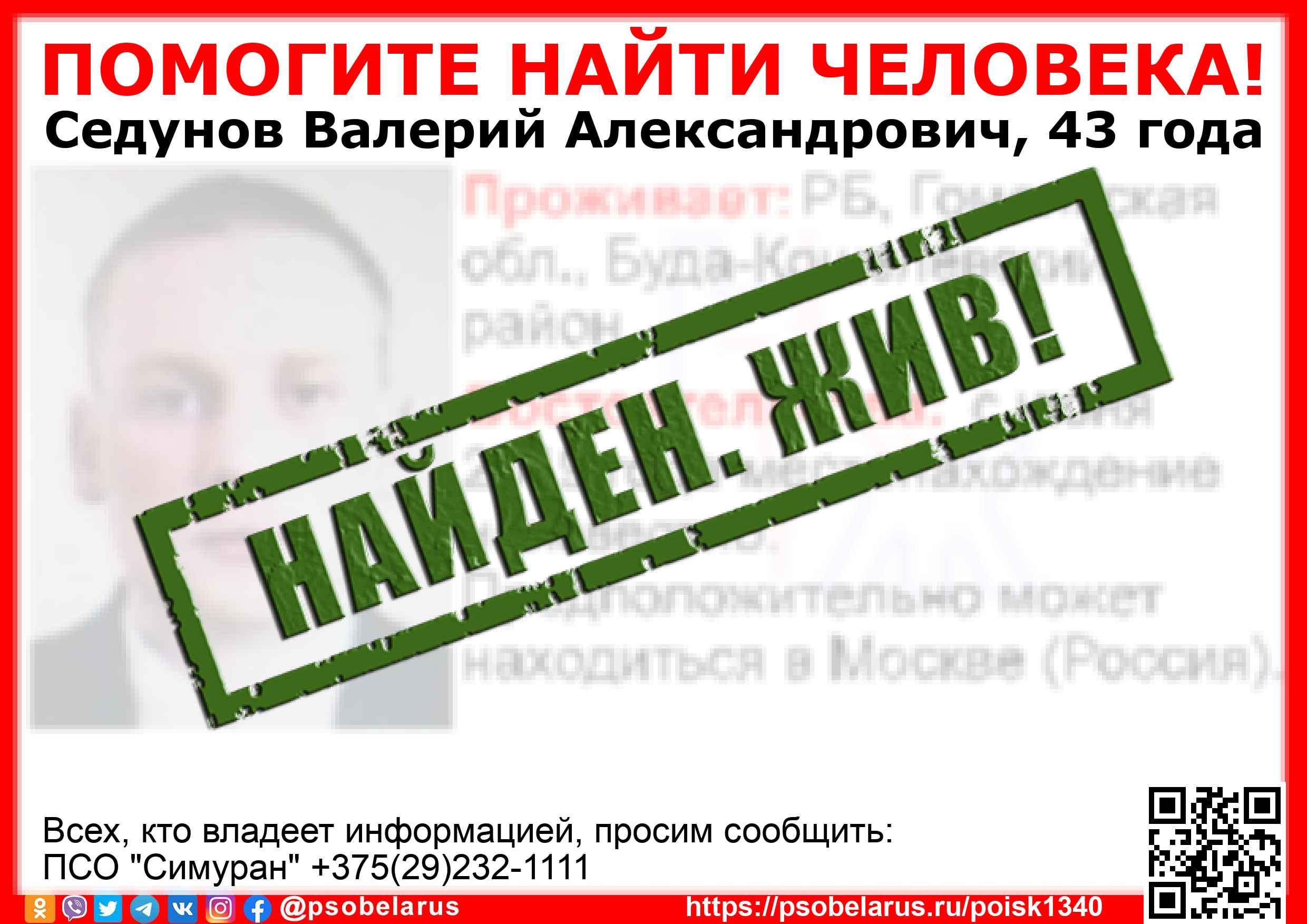 Всех, кто владеет информацией, просим сообщить: ПСО "Симуран" +375(29)232-1111 |