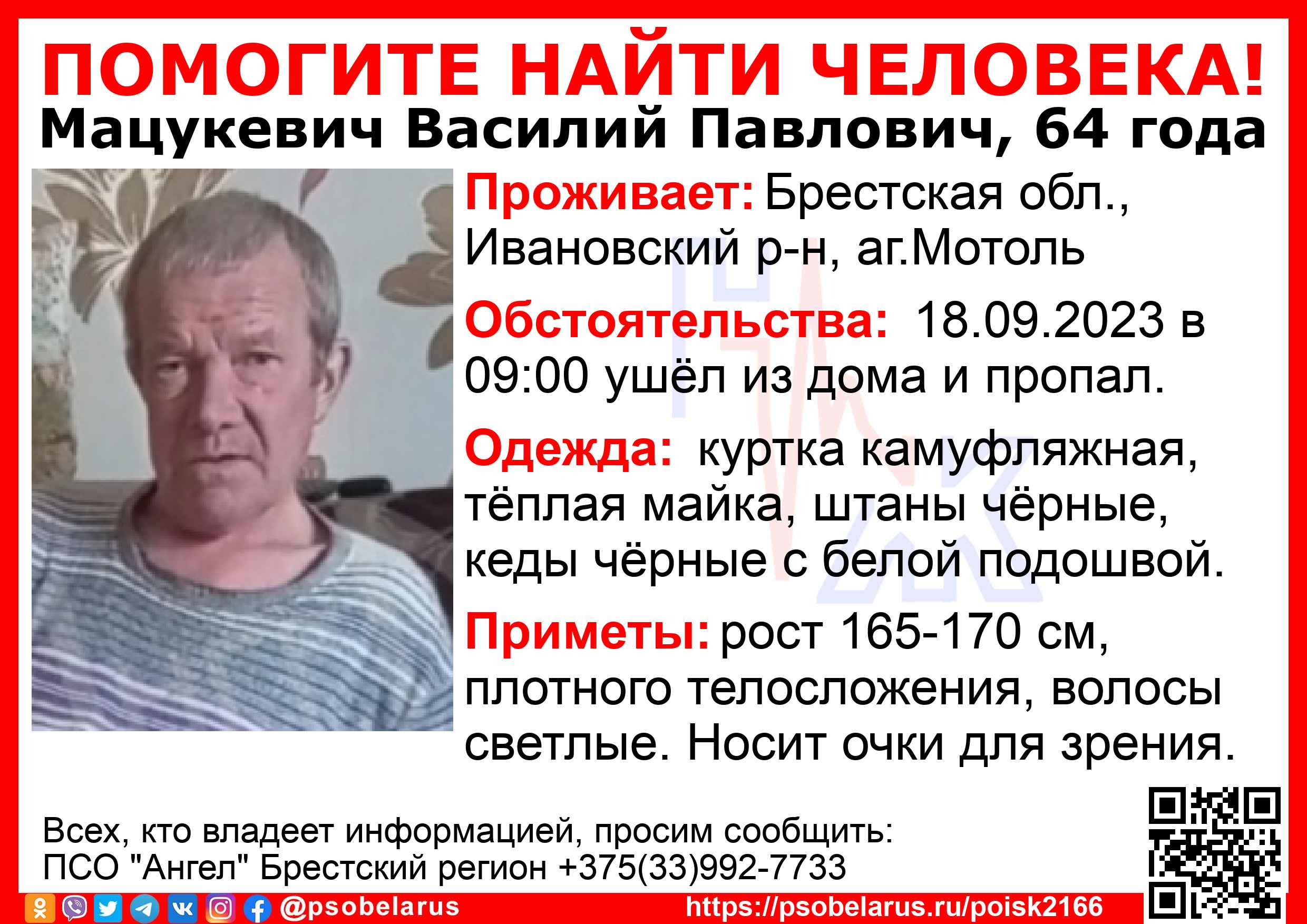 Всех, кто владеет информацией, просим сообщить: ПСО "Ангел" Брестский регион +375(33)992-7733 |