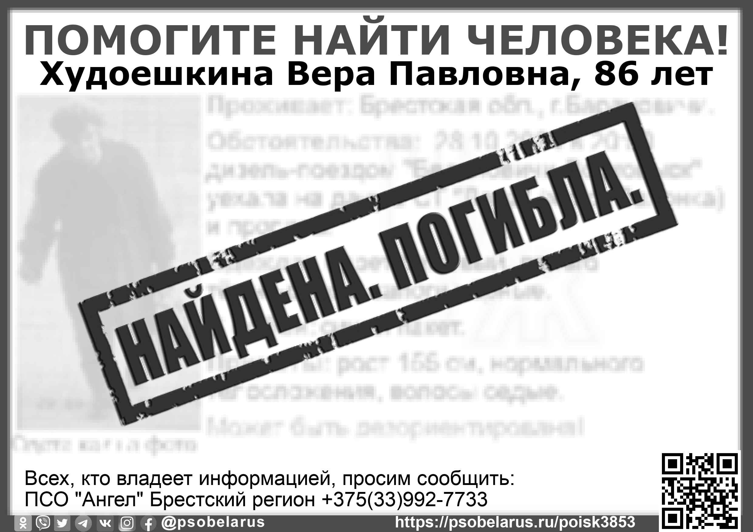 | Всех, кто владеет информацией, просим сообщить: ПСО "Ангел" Брестский регион +375(33)992-7733 |  |