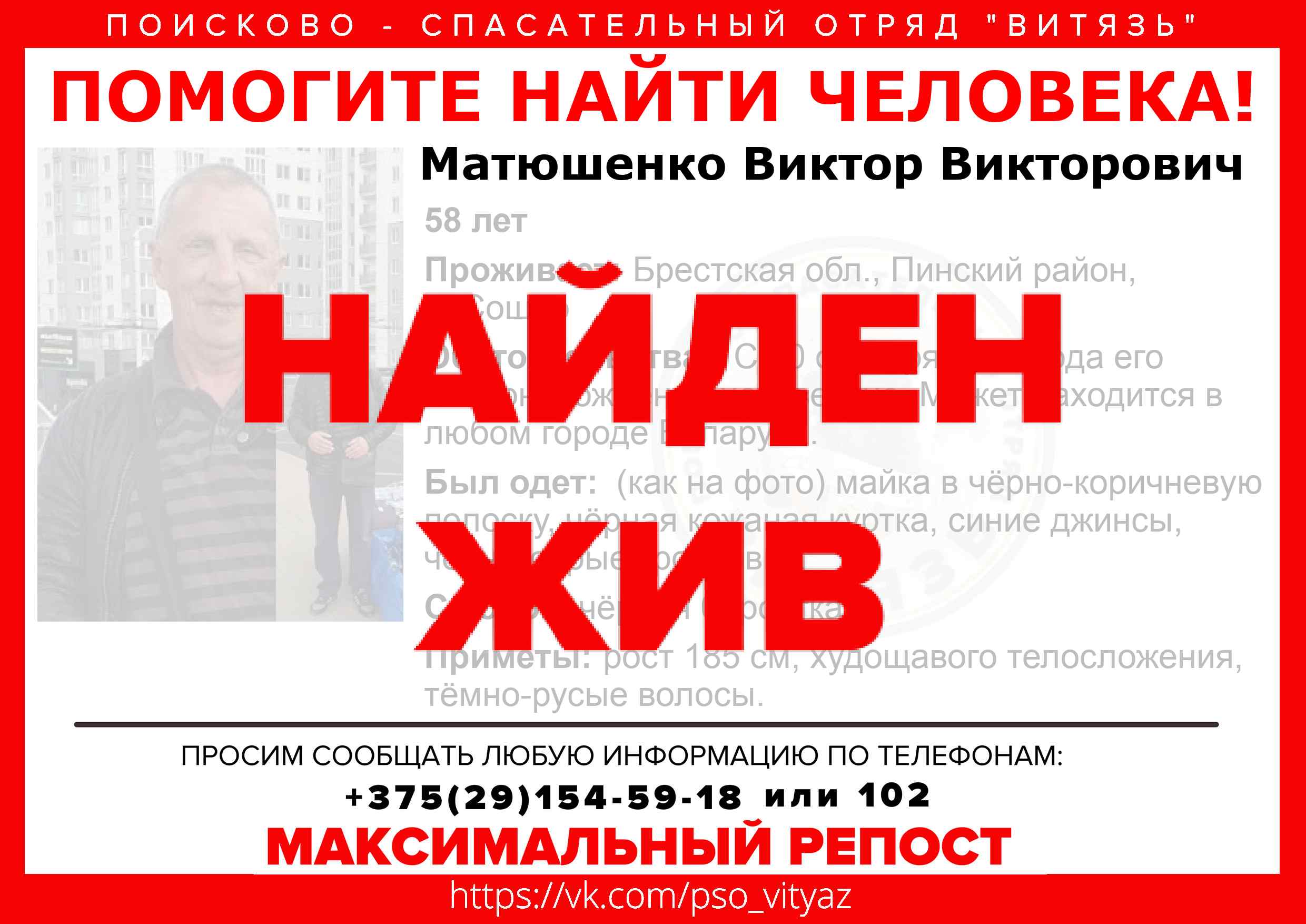 Всех, кто владеет информацией, просим сообщить: ПСО "ВИТЯЗЬ" +375(29)154-59-18 |