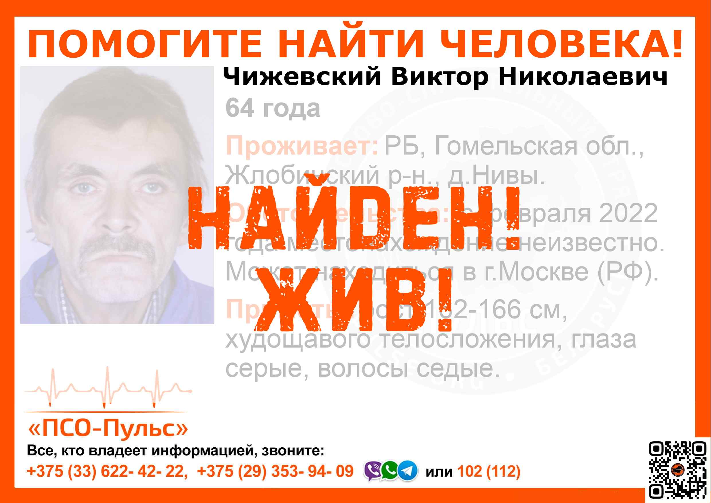 Всех, кто владеет информацией, просим сообщить: ПСО "ПСО-Пульс" +375(33)622-4222 |