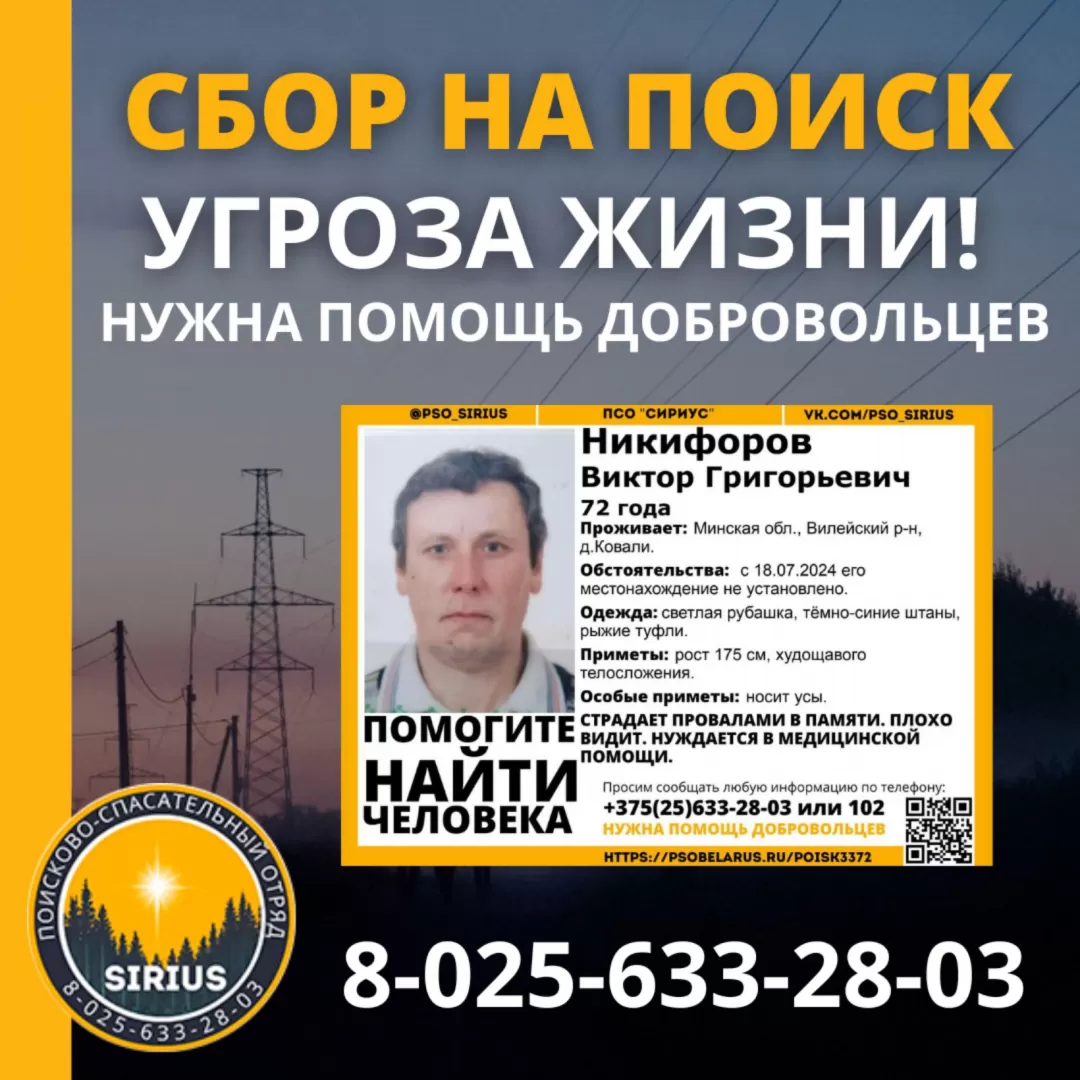 | Всех, кто владеет информацией, просим сообщить: ПСО "Сириус" +375(25)633-28-03 |  |
