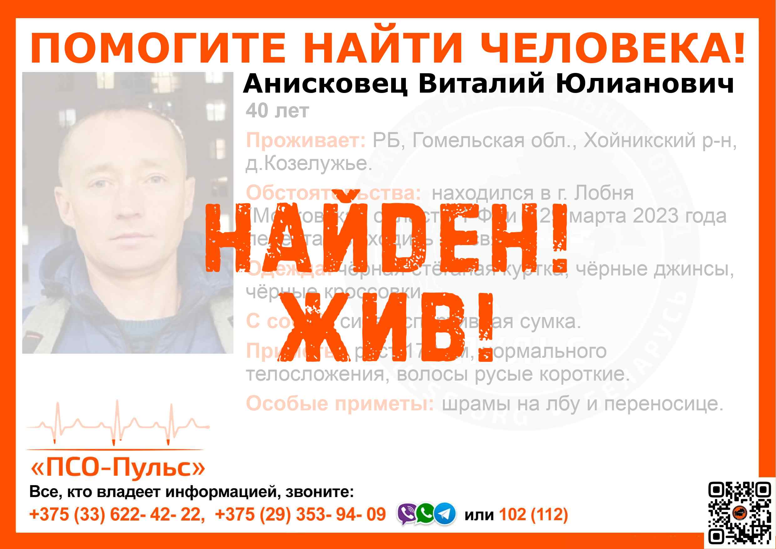 Всех, кто владеет информацией, просим сообщить: ПСО "ПСО-Пульс" +375(33)622-4222 |