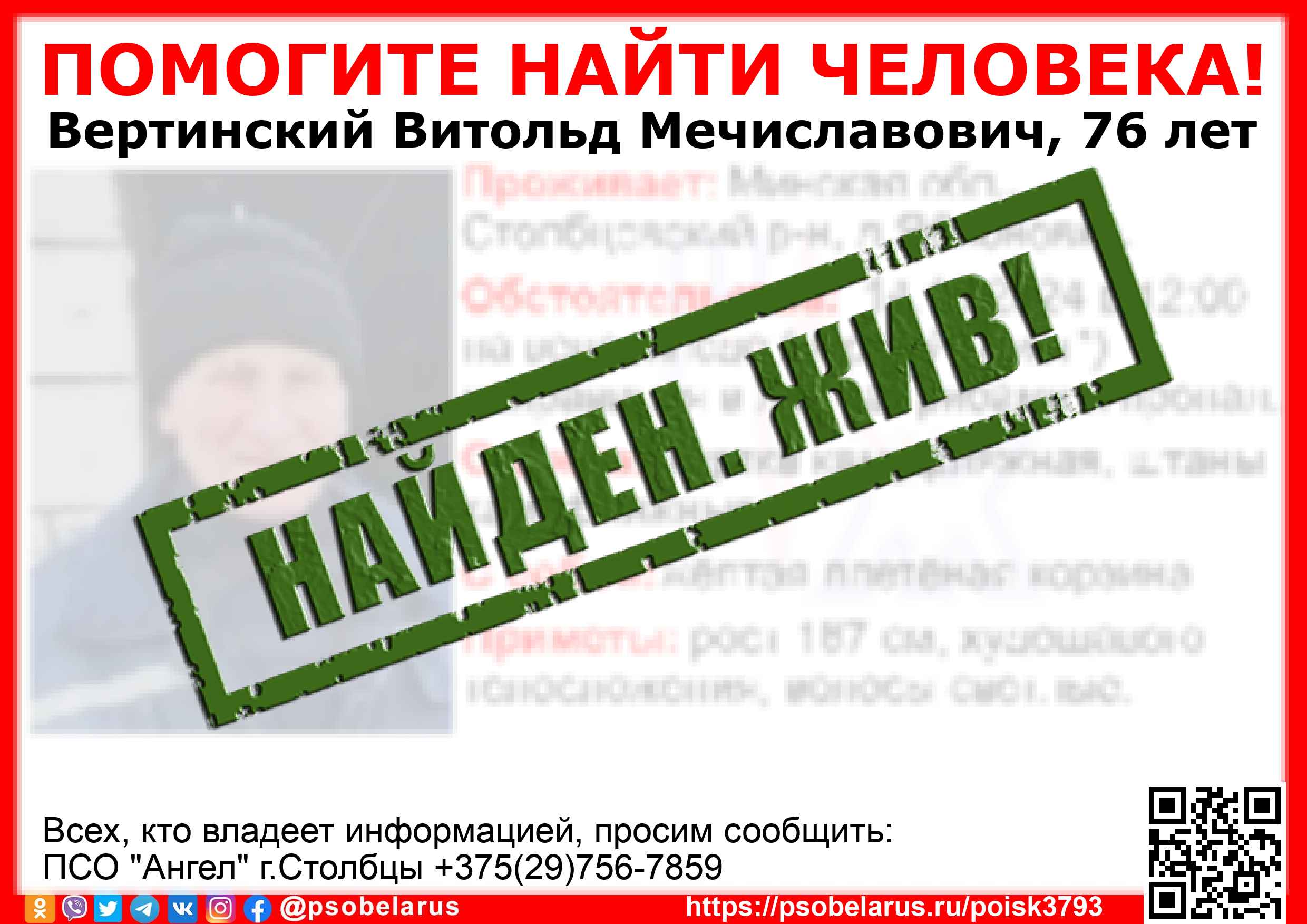 Всех, кто владеет информацией, просим сообщить: ПСО "Ангел" г.Столбцы +375(29)756-7859 |