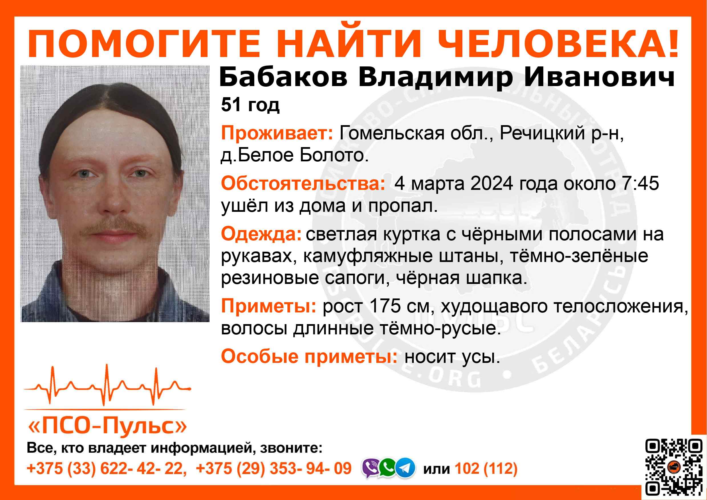 Скачать ориентировкуДля оперативного получения информации о пропавших людях и сборах на поиски можно подписаться на бота оповещения: Телеграм