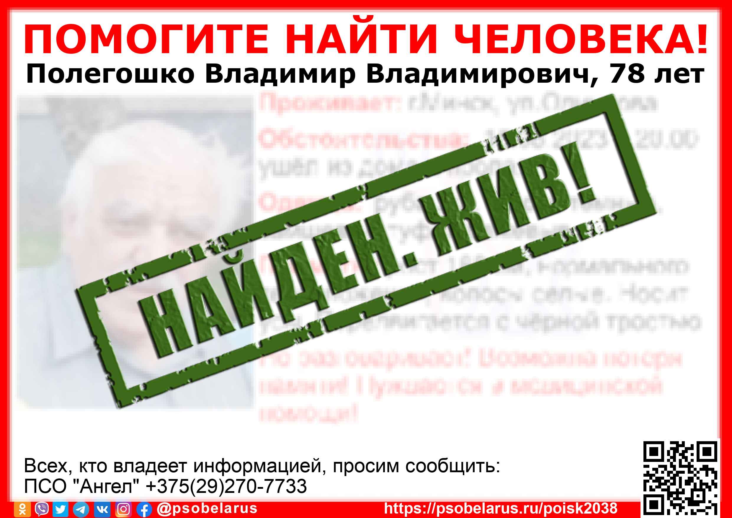 Всех, кто владеет информацией, просим сообщить: ПСО "Ангел" +375(29)270-7733 |