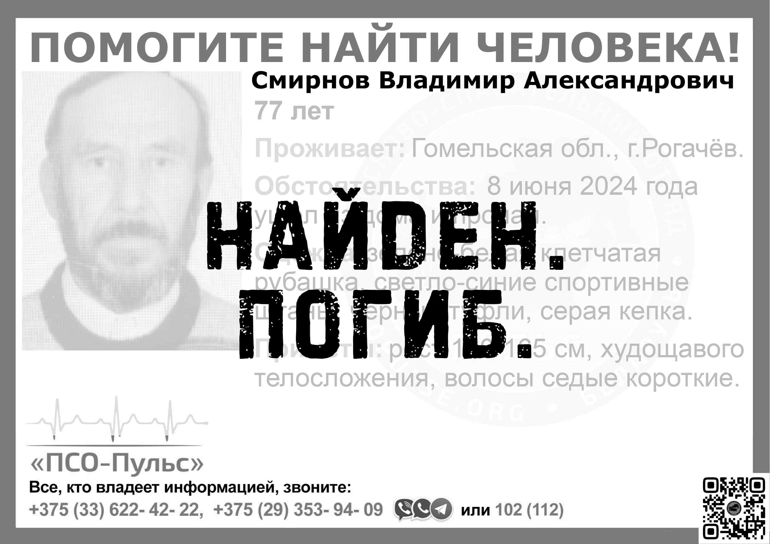 Всех, кто владеет информацией, просим сообщить: ПСО "ПСО-Пульс" +375(33)622-4222 |