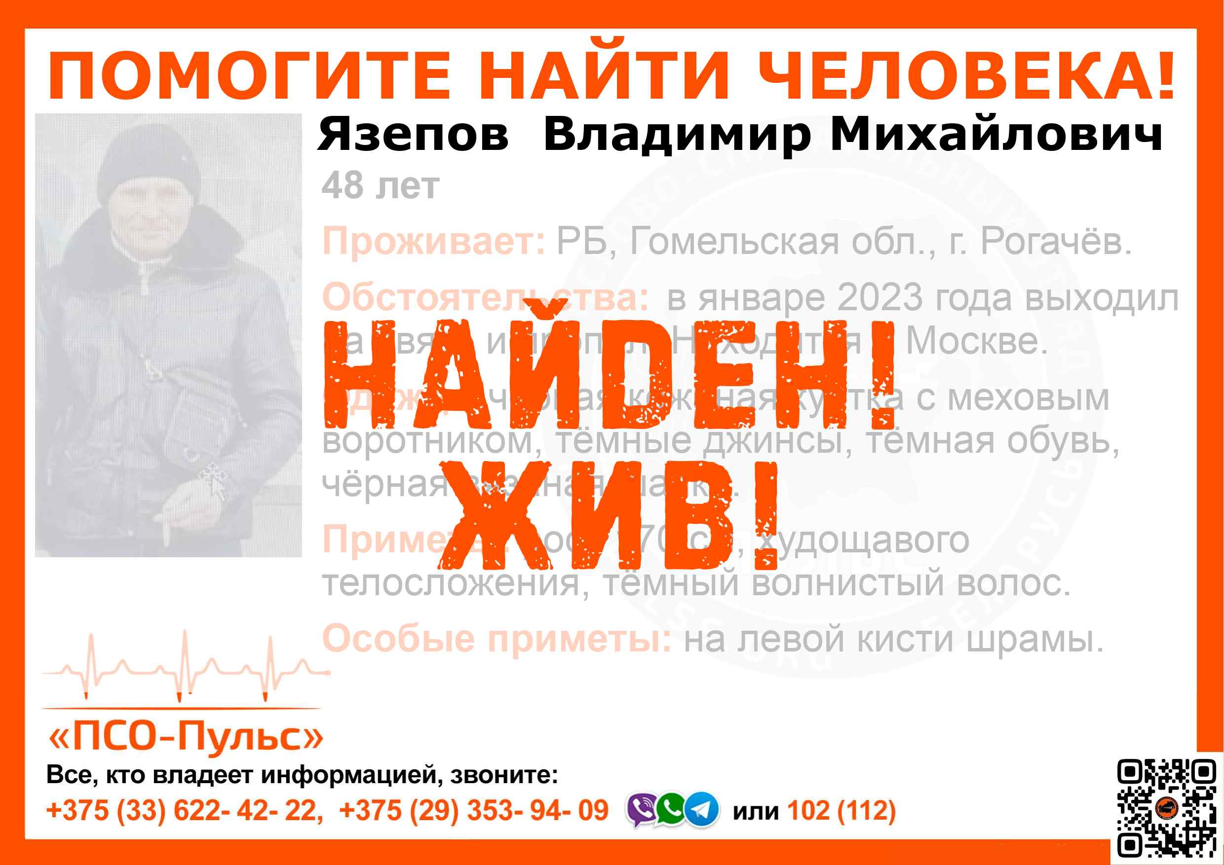 Всех, кто владеет информацией, просим сообщить: ПСО "ПСО-Пульс" +375(33)622-4222 |