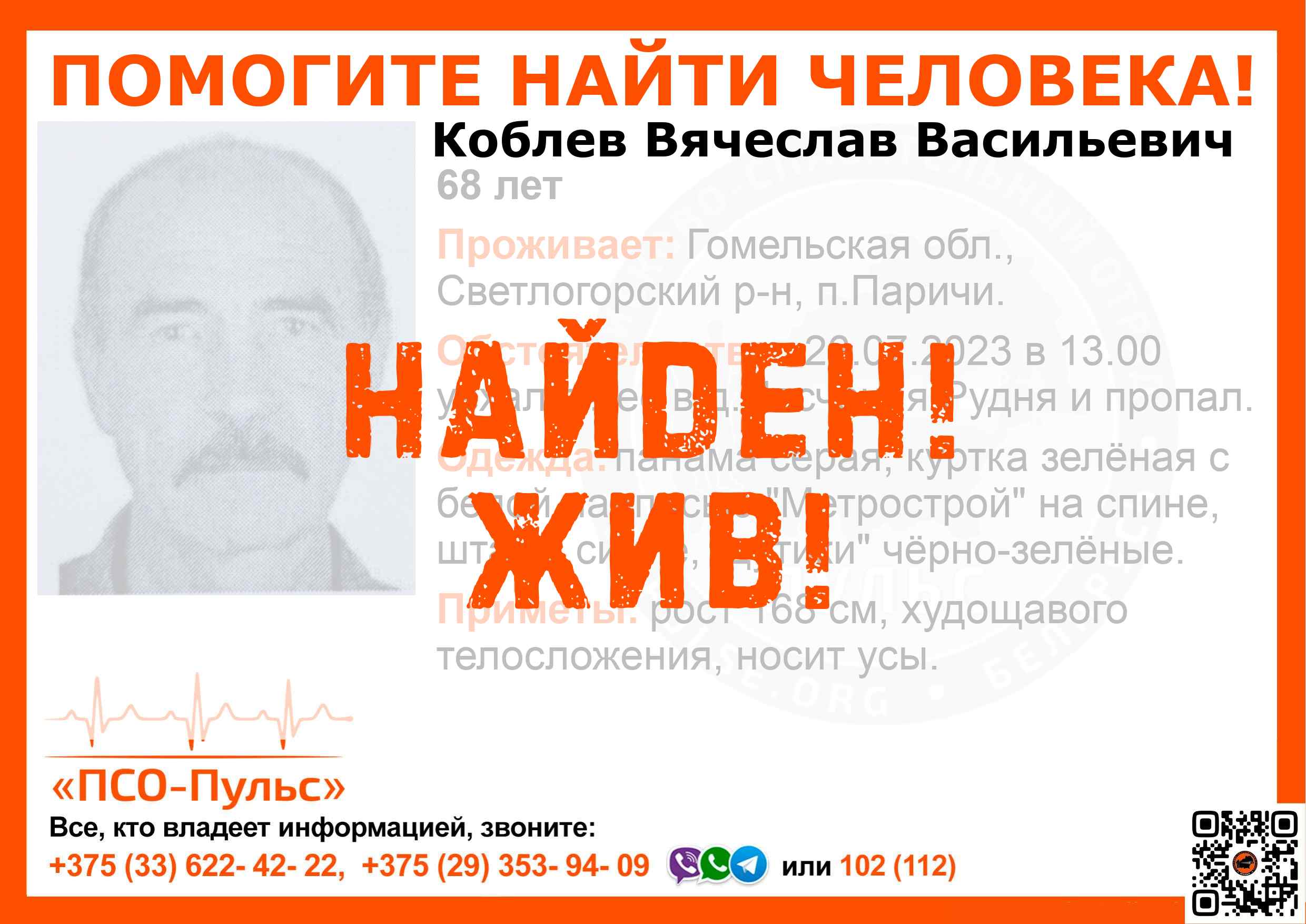 Всех, кто владеет информацией, просим сообщить: ПСО "ПСО-Пульс" +375(33)622-4222 |