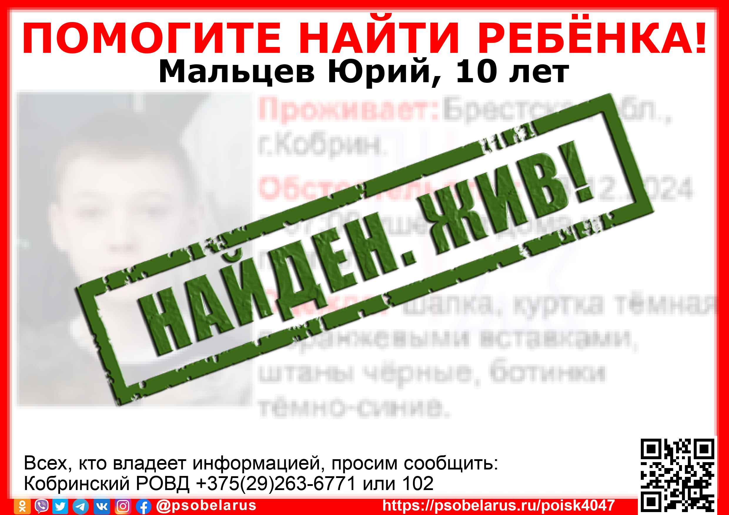| Всех, кто владеет информацией, просим сообщить: Кобринский РОВД +375(29)263-6771 или 102 |  |