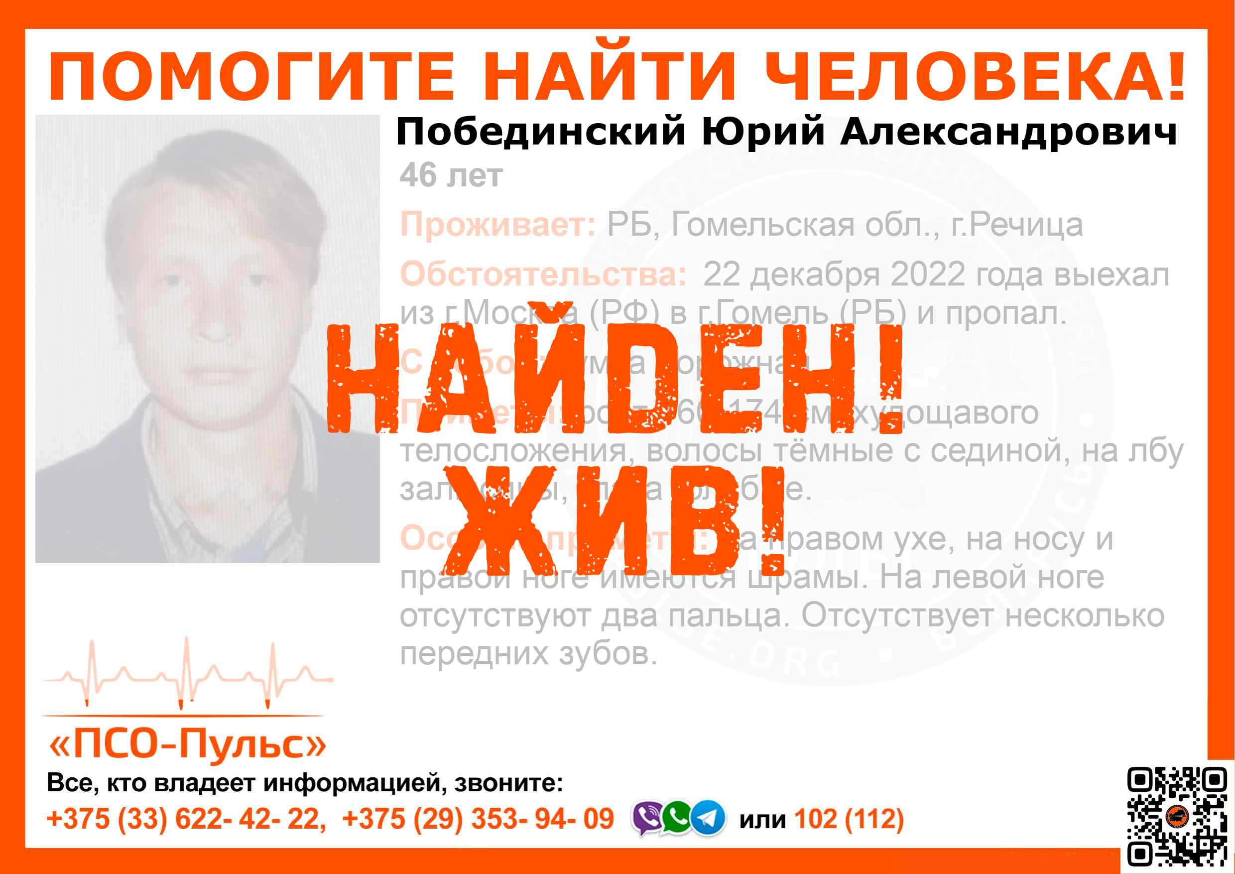 Всех, кто владеет информацией, просим сообщить: ПСО "ПСО-Пульс" +375(33)622-4222 |